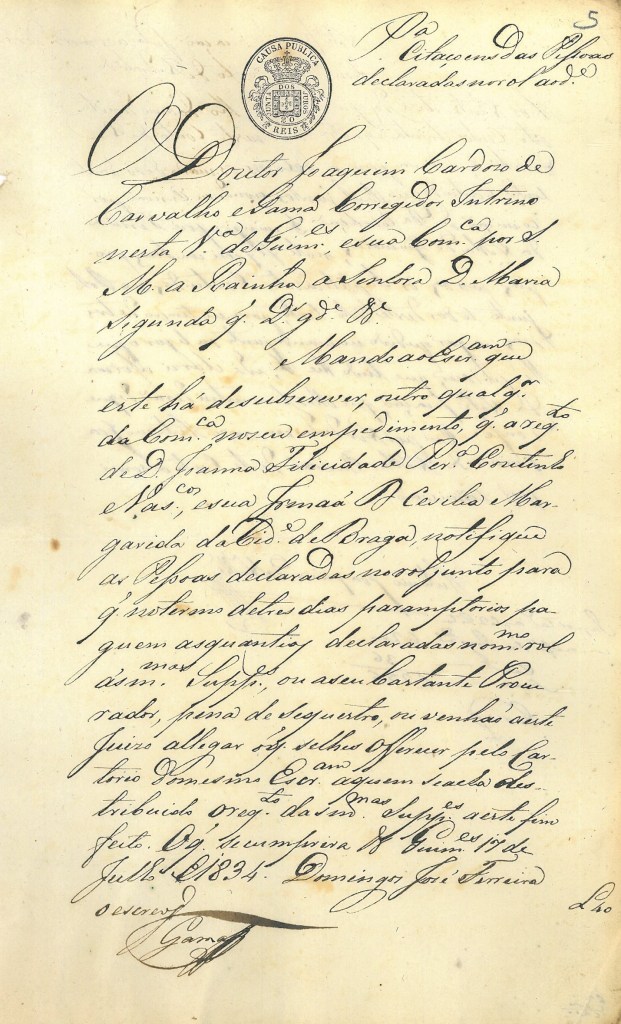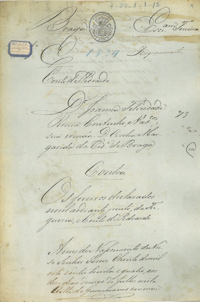 A 12 de julho de 1834, as proprietárias do Couto de Pedraído, Joana Felicidade Pereira Coutinho e Cecília Margarida Pereira Coutinho, intentaram uma ação judicial para exigir o pagamento do foro pelos seus foreiros. O processo decorreu num período de transição, marcado pela extinção formal dos coutos através da legislação liberal